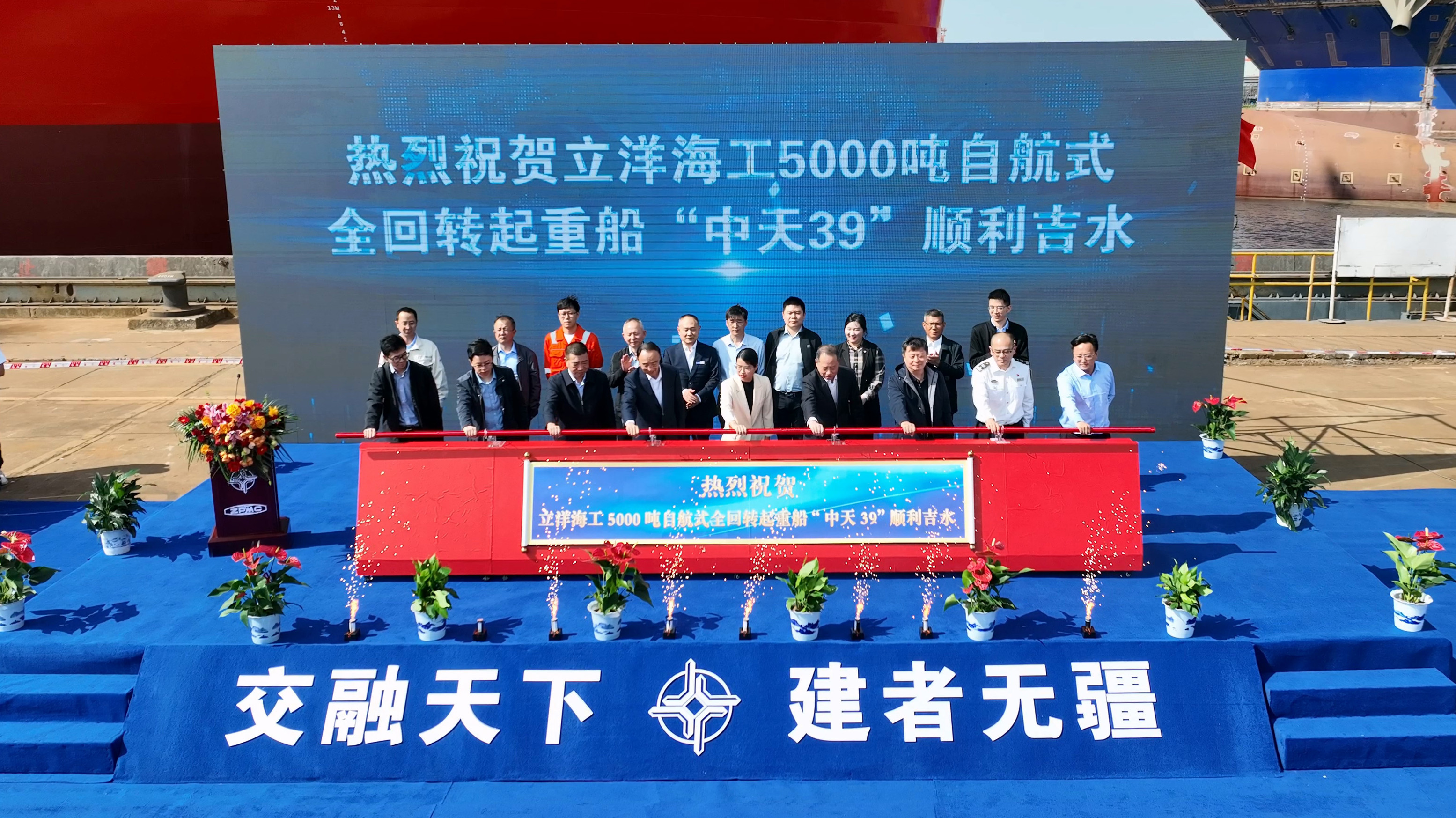 10月29日上午,啟東市海工船舶工業園(寅陽鎮)黨工委委員、管委會副主任宋水花女士,南通海事局啟東海事處副處長陳紅飛先生,中國船級社江蘇分社南通辦事處副主任萬萬先生,中天科技集團副總經理兼中天海洋工程董事長薛如根先生,中天科技海洋產業集團副總裁兼中天海工總經理吳建華先生,江蘇海力風電設備科技股份有限公司副總經理陳海駿先生,上海振華重工(集團)股份限公司副總裁張健先生等領導在上海振華重工啟東海洋工程股份有限公司參加“立洋海工5000噸自航式全回轉起重船‘中天39’”項目的吉水儀式。